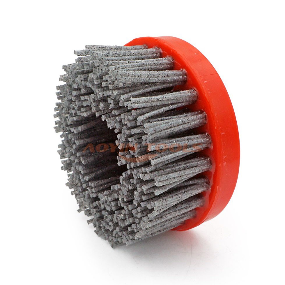 A: The diamonds are bonded within resin-impregnated wires. This resin matrix securely holds a high density of diamond powder, allowing for consistent wear and effective abrasion throughout the brush's life.